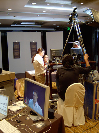 Elke locatie was uitgerust met drie camera 's die live video in beide richtingen streamden. Een technisch team in Zaventem, België, monteerde de zes feeds in realtime en zond het eindresultaat live uit naar 600 VIP-gasten van over de hele wereld .